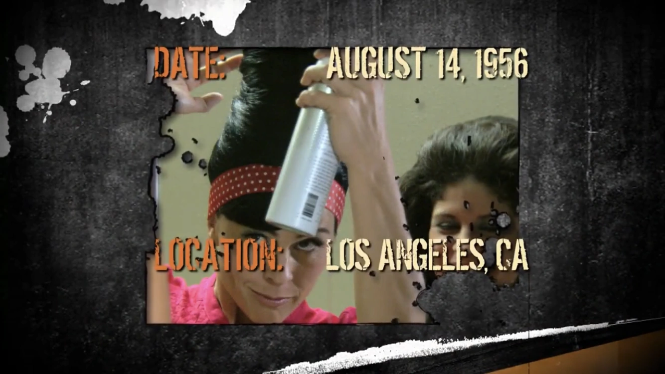 A woman named Betty on a double date with Suzy refuses to let her boyfriend, Joe make out with her, fearing her beehive hairstyle (popular in the 50's) will be ruined. Finally, he gets frustrated with her and the two step outside to smoke cigarettes, with Joe lighting hers for her cigarette. Only one problem: back in the 1950's, hairspray contained alcohol and other flammable substances, causing Betty's hair to burn hotter as pizza oven and longer. The flame from his lighter sets fire to her hair, saturated with hairspray. Betty dies when the fire spreads to her scalp, burning her skull and cooking her brain, becoming one of the most painful deaths seen in this series.
