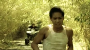 Ting (portrayed by the late Surawit Sae Kang) was hired by the Southeast Asian drug lords to protect their opium. Ting deals with trespassers by violently decapitating them without showing any remorse. He would display their severed heads on his posts as a warning for incoming potential poachers/trespassers. One day, Ting receives a word/call from unknown person that a couple more poachers/trespassers, who are being initiated, are out. Ting prepares his machete, hops on his ATV and chases the two wannabe drug smugglers. In the heat of the chase, the two wannabe drug smugglers hide and Ting turns his speeder around, but he forgets one important thing; the barbed-wire fence that he installed a few days earlier. As his speeder drives through the fence, the top wire of the fence ironically decapitates Ting, killing him instantly.