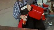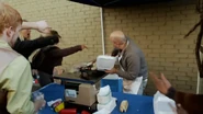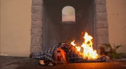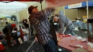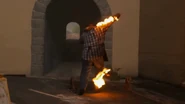 Eventually Denis lost his head, the rage turned him completely insane and he prepared a Molotov cocktail, Stan mocked Denis and the customers ran away in fear when they saw him light the Molotov, then Denis threw the Molotov at Stan's stand and set it ablaze, which made Stan panic and run away, but Denis was standing too close to the flames and set himself on fire instead.